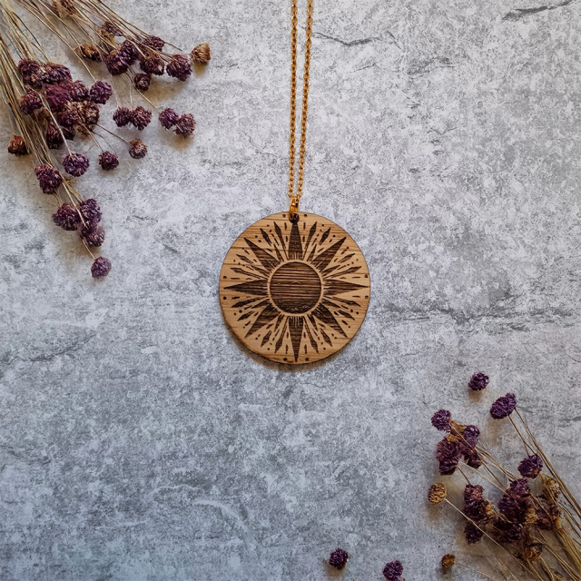 Diese elegante Halskette vereint natürliche Materialien mit modernem Design und einem starken Fokus auf Nachhaltigkeit. Der kunstvolle Anhänger wird aus furniertem 3 mm HDF-Holz gefertigt, das aus verantwortungsvoller europäischer Forstwirtschaft stammt. Dabei haben Sie die Möglichkeit, zwischen verschiedenen Holzarten zu wählen, um den Ohrringen Ihre ganz persönliche Note zu verleihen. Jede einzelne Gravur ist präzise ausgearbeitet und verleiht dem Schmuckstück eine individuelle Note. Die natürliche Holzstruktur macht jedes Exemplar einzigartig und zu einem echten Blickfang.