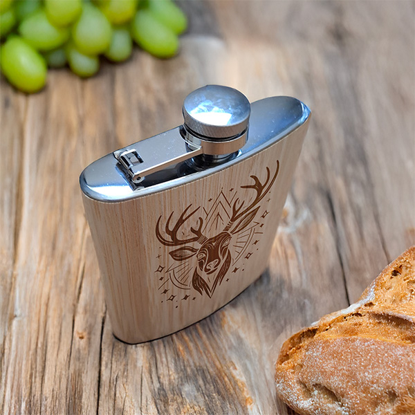 Ob als stilvoller Begleiter für Outdoor-Abenteuer, besondere Anlässe oder als individuelles Geschenk – dieser Flachmann kombiniert edles Design, natürliche Materialien und eine persönliche Note auf beeindruckende Weise.