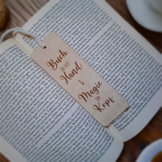 Entdecken Sie unser einzigartiges Lesezeichen aus hochwertigem Pappelsperrholz – die perfekte Verbindung von Stil, Nachhaltigkeit und Funktionalität. Mit einer Stärke von 3 mm ist das Holz leicht und dennoch robust, ideal für den täglichen Gebrauch. Die sorgfältige Textgravur verewigt inspirierende Sprüche und Zitate, die Bücherliebhaber auf jeder Lesereise begleiten und jedes Lesezeichen zu einem ganz persönlichen Accessoire machen.