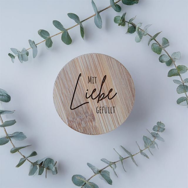 Unsere stilvollen Vorratsgläser aus zartem, rosafarbenem Mattglas mit einem eleganten Bambusdeckel sind die perfekte Kombination aus Funktionalität und liebevollem Design. Der Deckel ist mit sorgfältig gravierten Motiven und herzlichen Sprüchen verziert – dabei stehen verschiedene Designs zur Auswahl, sodass jedes Glas ganz individuell und persönlich gestaltet werden kann. So wird jedes Glas zu einem besonderen Geschenk oder einer charmanten Dekoration für das Zuhause.