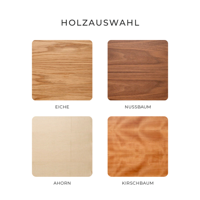 Holz ist ein Naturprodukt, daher können Struktur und Farbe von Stück zu Stück leicht variieren. Diese natürlichen Unterschiede machen jedes Produkt einzigartig und unterstreichen seine individuelle Schönheit.