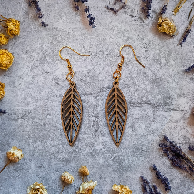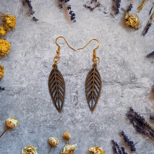 Diese eleganten Ohrringe vereinen natürliche Materialien mit modernem Design und einem starken Fokus auf Nachhaltigkeit. Die kunstvollen Anhänger werden aus furniertem 3 mm HDF-Holz gefertigt, das aus verantwortungsvoller europäischer Forstwirtschaft stammt. Dabei haben Sie die Möglichkeit, zwischen verschiedenen Holzarten zu wählen, um den Ohrringen Ihre ganz persönliche Note zu verleihen. Jeder einzelne Ausschnitt ist präzise ausgearbeitet und verleiht den Ohrringen eine individuelle Note. Die natürliche Holzstruktur macht jedes Exemplar einzigartig und zu einem echten Blickfang.