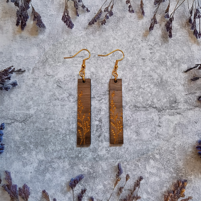 Diese eleganten Ohrringe vereinen natürliche Materialien mit modernem Design und einem starken Fokus auf Nachhaltigkeit. Die kunstvollen Anhänger werden aus furniertem 3 mm HDF-Holz gefertigt, das aus verantwortungsvoller europäischer Forstwirtschaft stammt. Dabei haben Sie die Möglichkeit, zwischen verschiedenen Holzarten zu wählen, um den Ohrringen Ihre ganz persönliche Note zu verleihen.Jede einzelne Gravur ist präzise ausgearbeitet und verleiht dem Schmuckstück eine individuelle Note. Die natürliche Holzstruktur macht jedes Exemplar einzigartig und zu einem echten Blickfang.