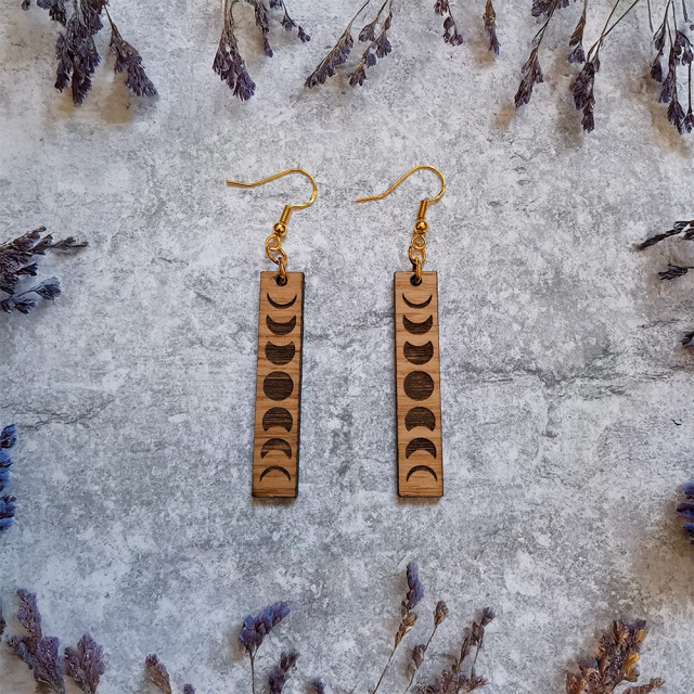 Diese eleganten Ohrringe vereinen natürliche Materialien mit modernem Design und einem starken Fokus auf Nachhaltigkeit. Die kunstvollen Anhänger werden aus furniertem 3 mm HDF-Holz gefertigt, das aus verantwortungsvoller europäischer Forstwirtschaft stammt. Dabei haben Sie die Möglichkeit, zwischen verschiedenen Holzarten zu wählen, um den Ohrringen Ihre ganz persönliche Note zu verleihen.Jede einzelne Gravur ist präzise ausgearbeitet und verleiht dem Schmuckstück eine individuelle Note. Die natürliche Holzstruktur macht jedes Exemplar einzigartig und zu einem echten Blickfang.
